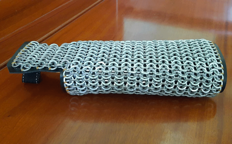 การใช้งาน:เกราะช่วยปกป้องแขนและมือจากการแทง วัตถุมีคม และลดแรงกระแทก