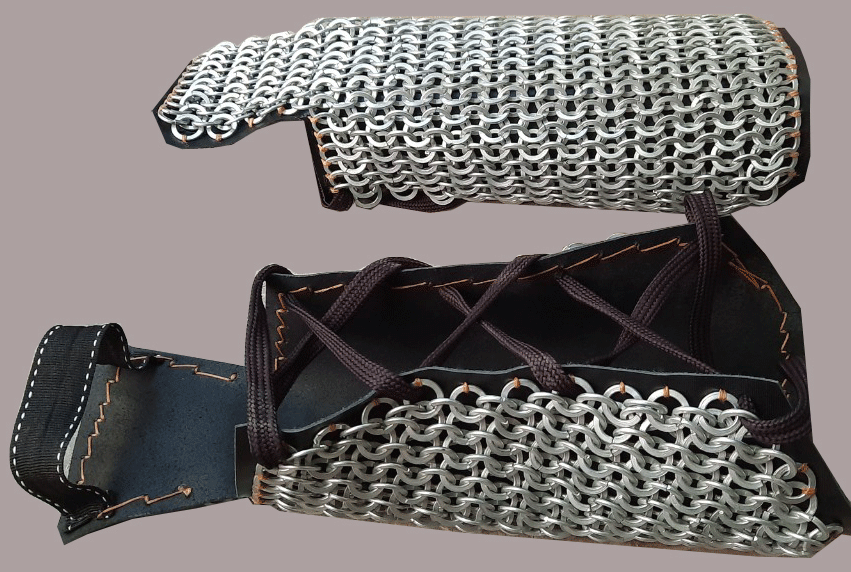 เกราะถูกผูกด้วยสายรัด ช่วยให้เกราะยึดติดกับแขนได้แน่น