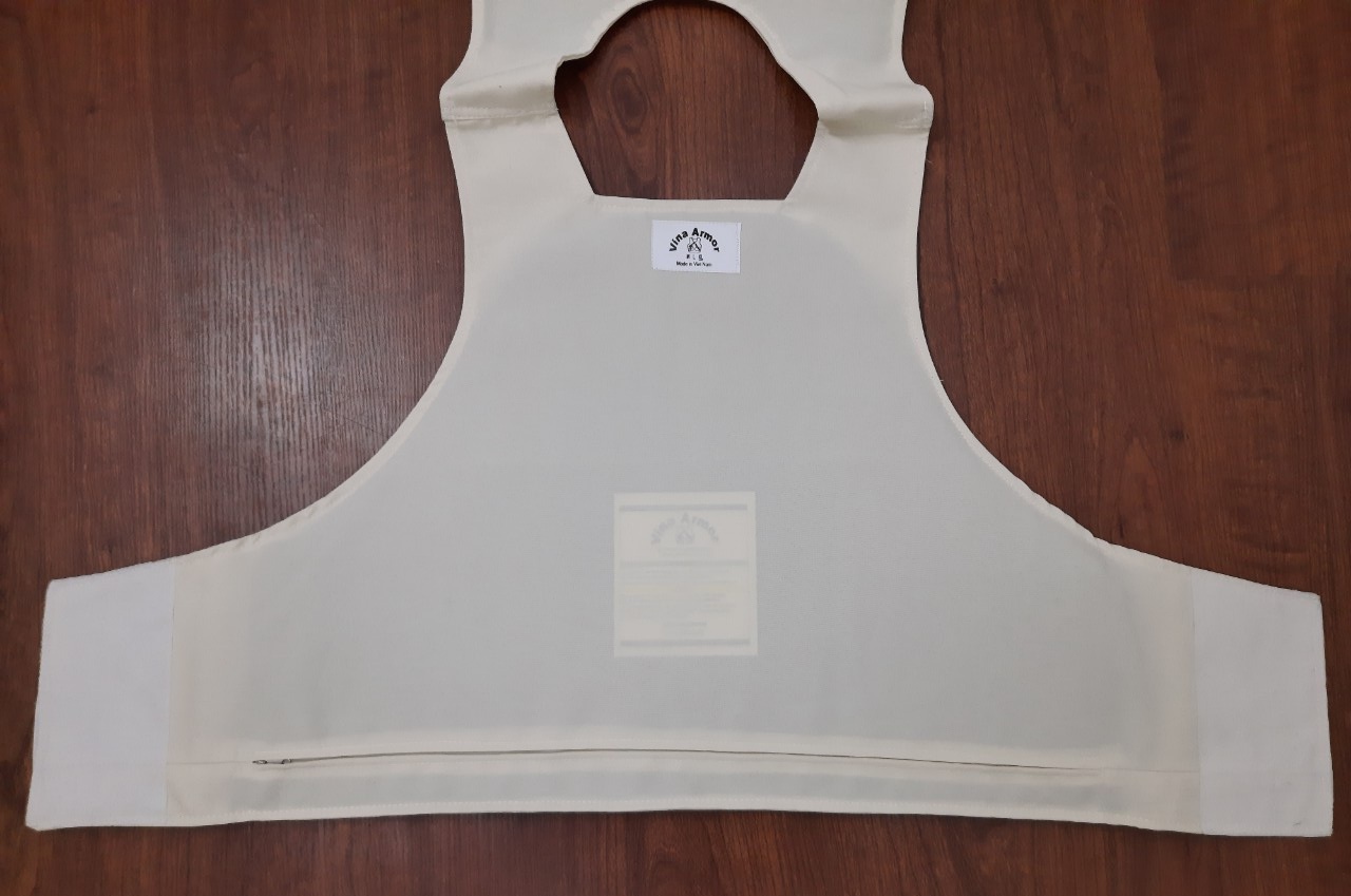 เกราะนี้ผลิตที่ Vina Armor ด้วยวัสดุสังเคราะห์ เปลือกทำจากผ้าโพลีเอสเตอร์คุณภาพสูง กันน้ำได้ดี